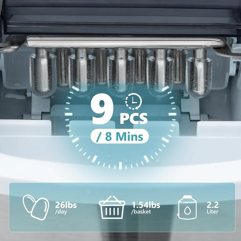 EUHOMY Nugget Ice Maker Countertop with Handle, Ready in 6 Mins, 34lbs Per Day, Removable Top Cover, Auto-Cleaning, Portable Sonic Ice Maker with Basket and Scoop, for Home/Party/RV/Camping (Black)