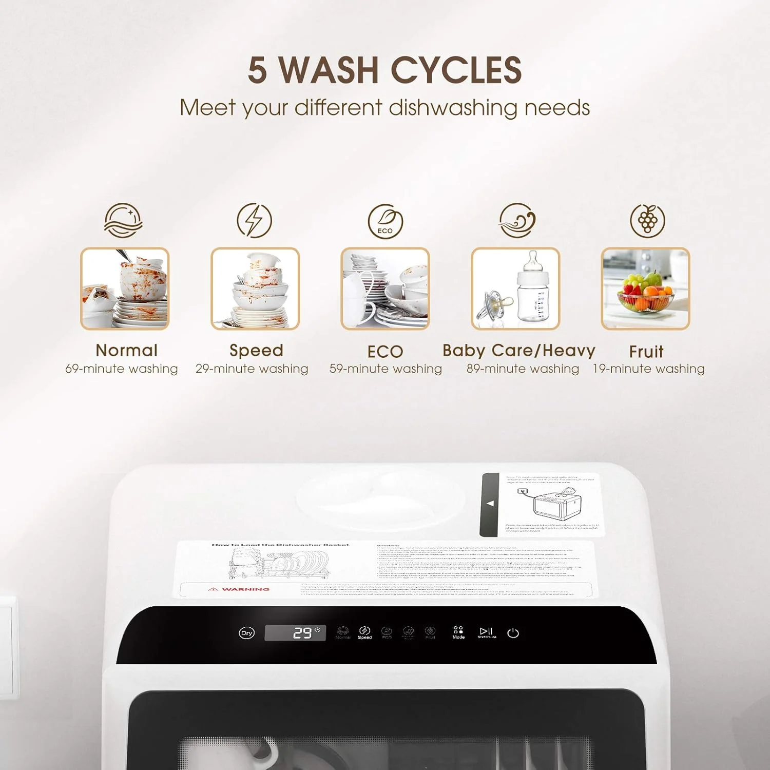 NOVETE Portable Countertop Dishwashers, Compact Dishwashers with 5 L Built-in Water Tank & Inlet Hose, 5 Washing Programs, Baby Care, Air-Dry Function and LED Light for Small Apartments