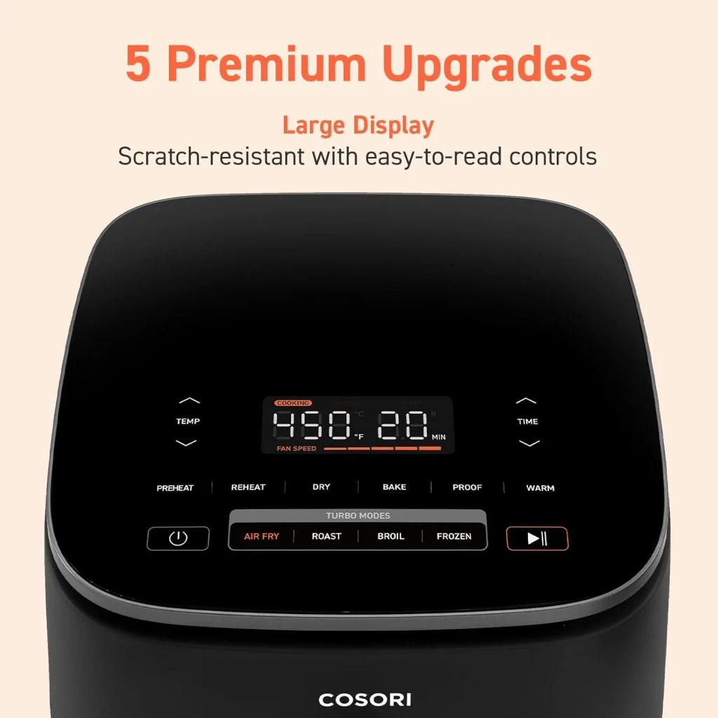 COSORI Air Fryer 9-in-1, Compact & Large 6-Qt, Fast Turbo Modes, 90–450°F Precise Heat for Even Results, Up to 95% Less Oil*, Roast, Bake, Dry, Reheat, Frozen, Broil, Proof, 120V, TurboBlaze, Grey