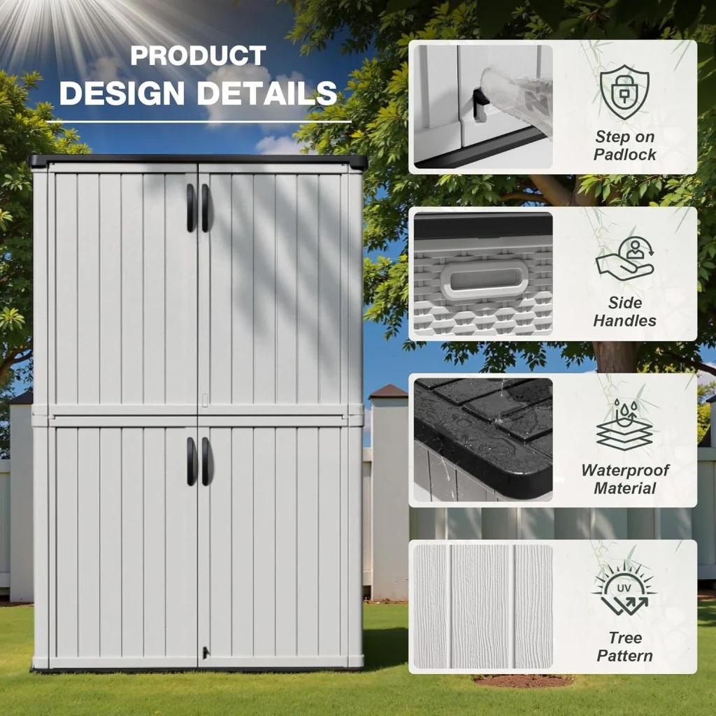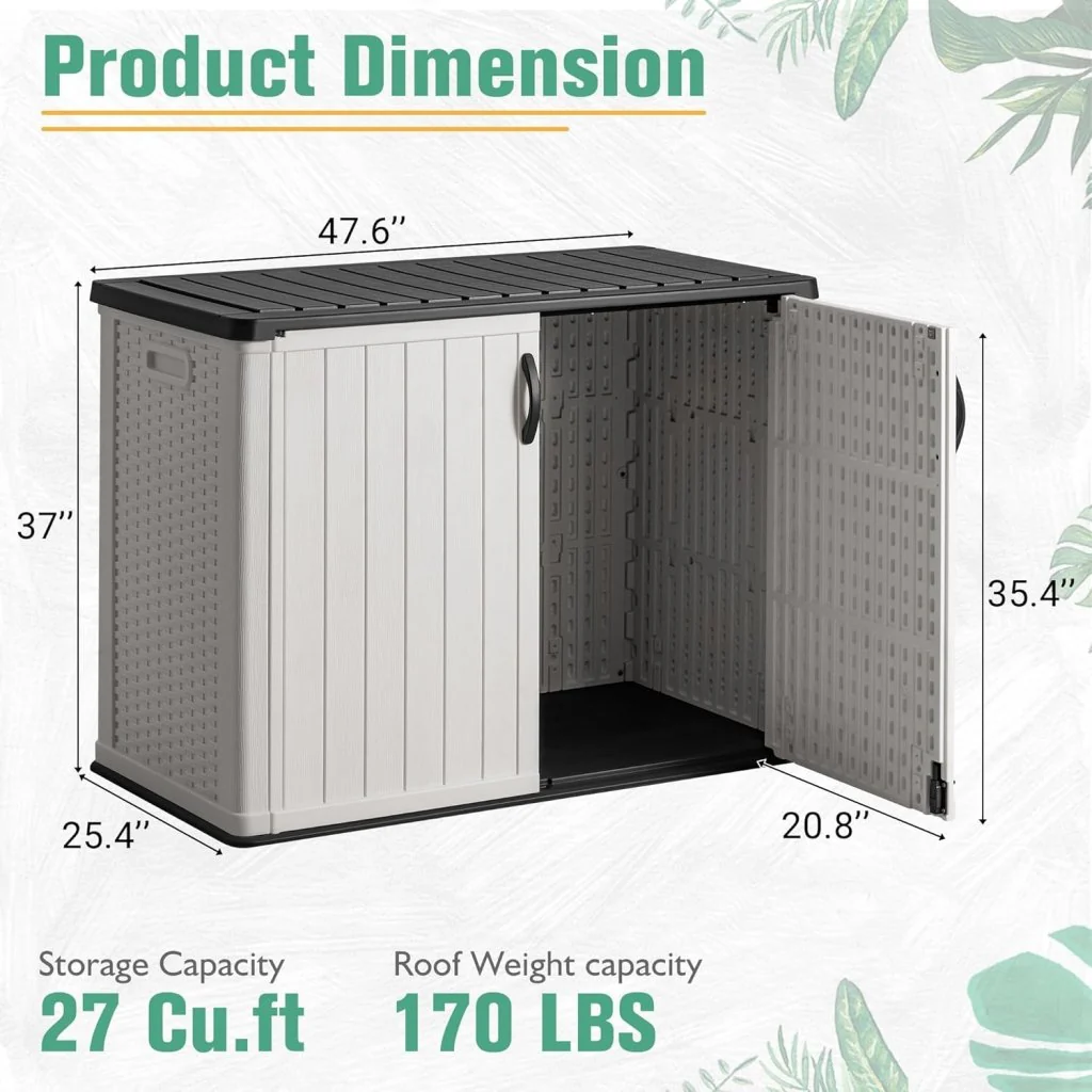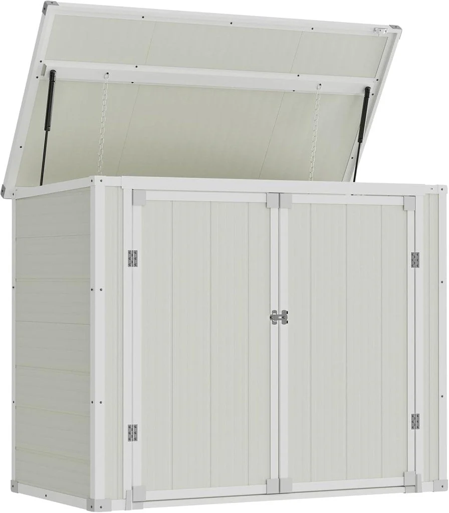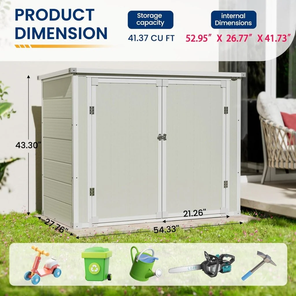 Amopatio 41 Cu Ft Horizontal Outdoor Storage Shed, Resin Trash Can Storage,Resin Shed for Garden Tools, Lawn Mowers, Garbage Cans, Patio Use