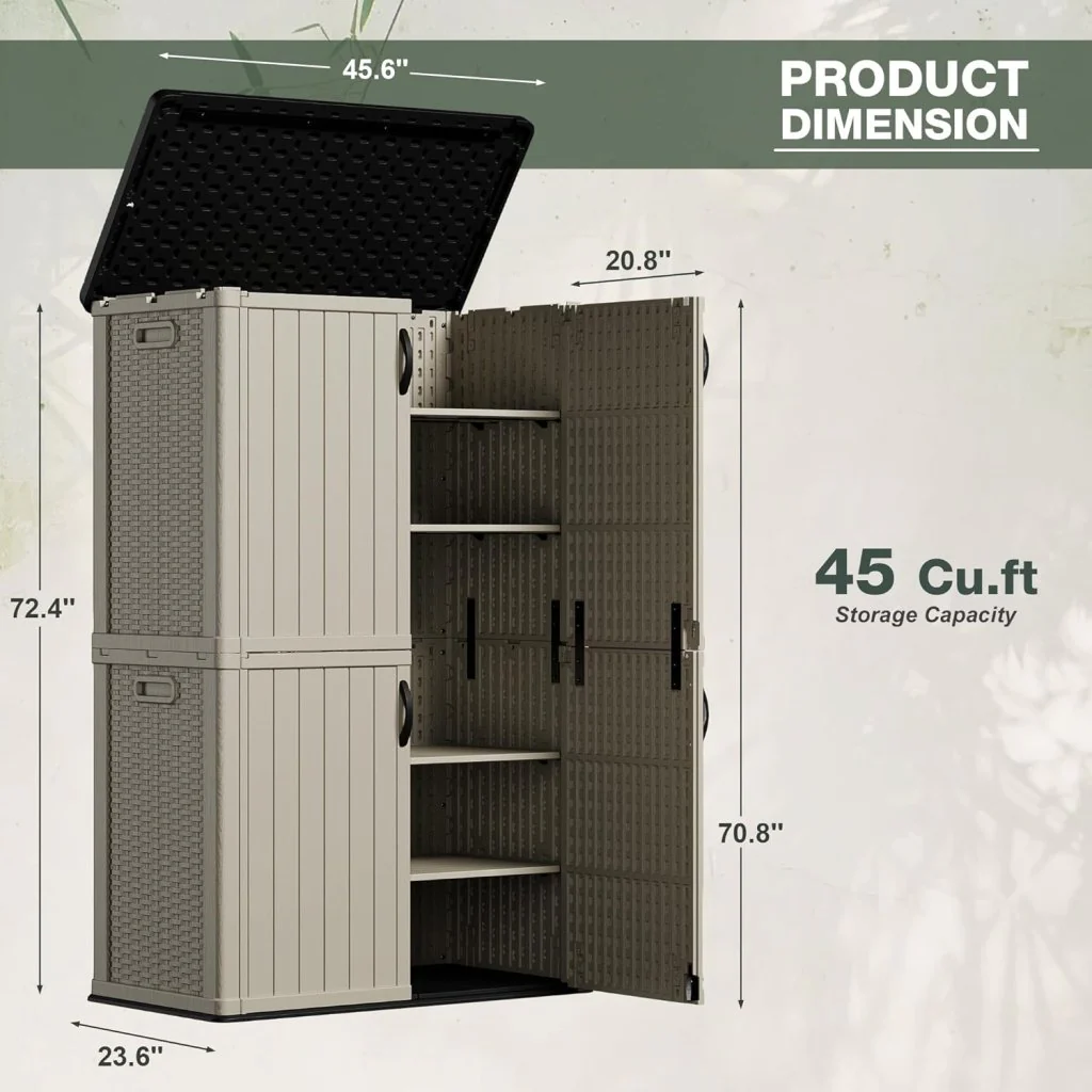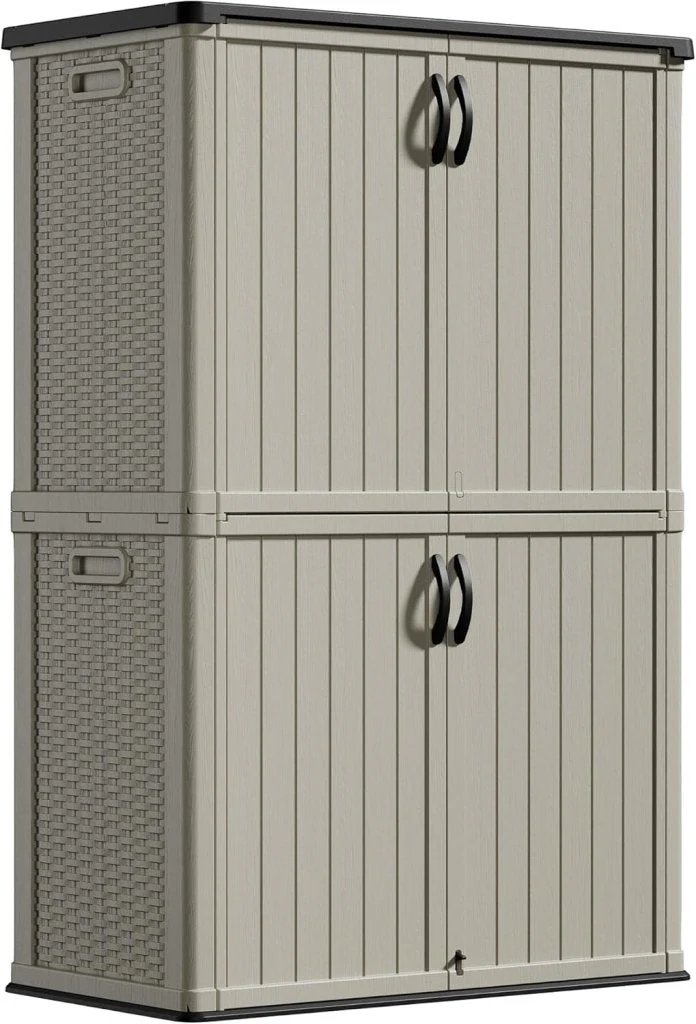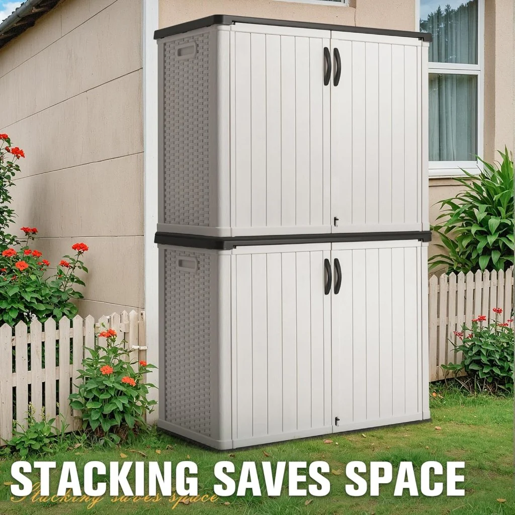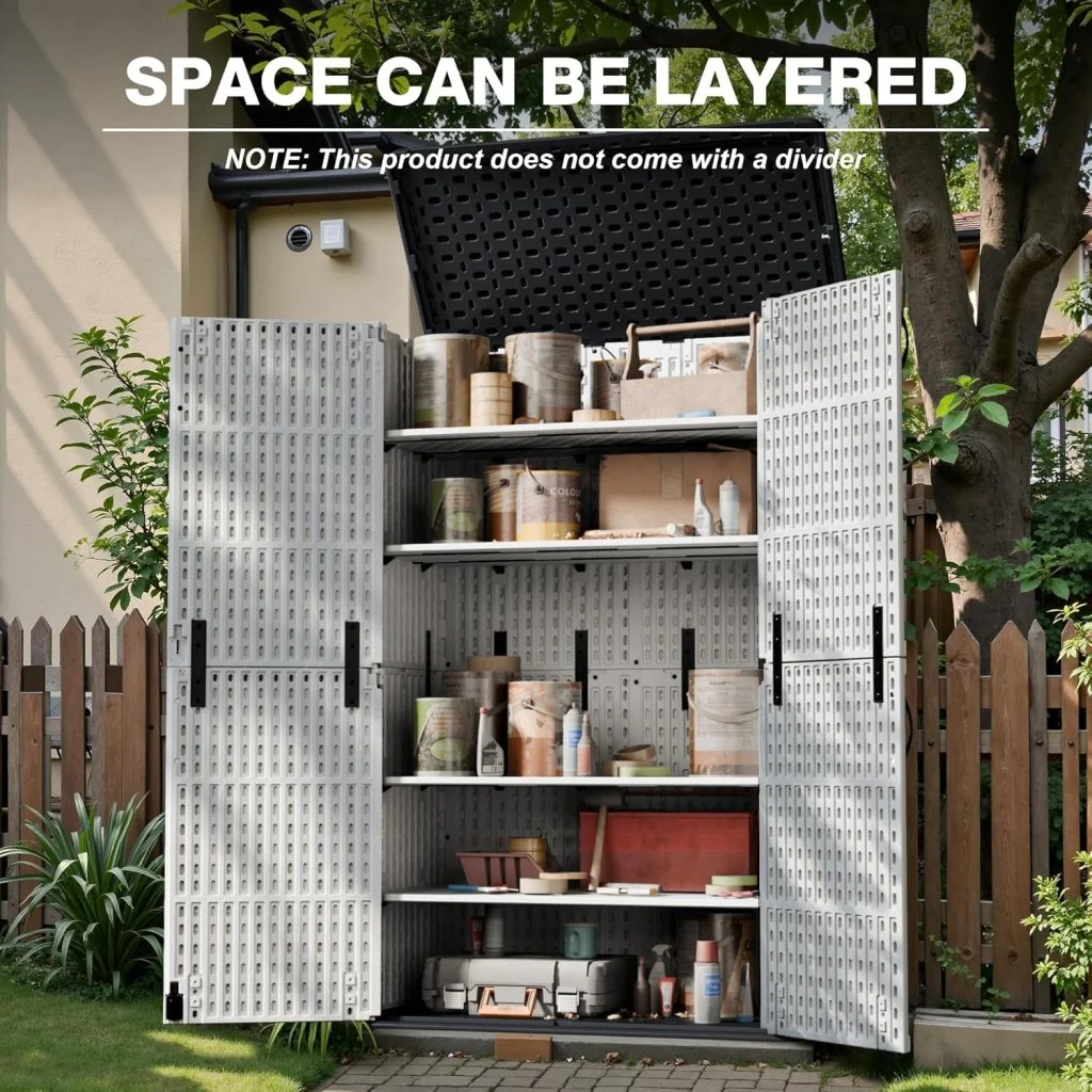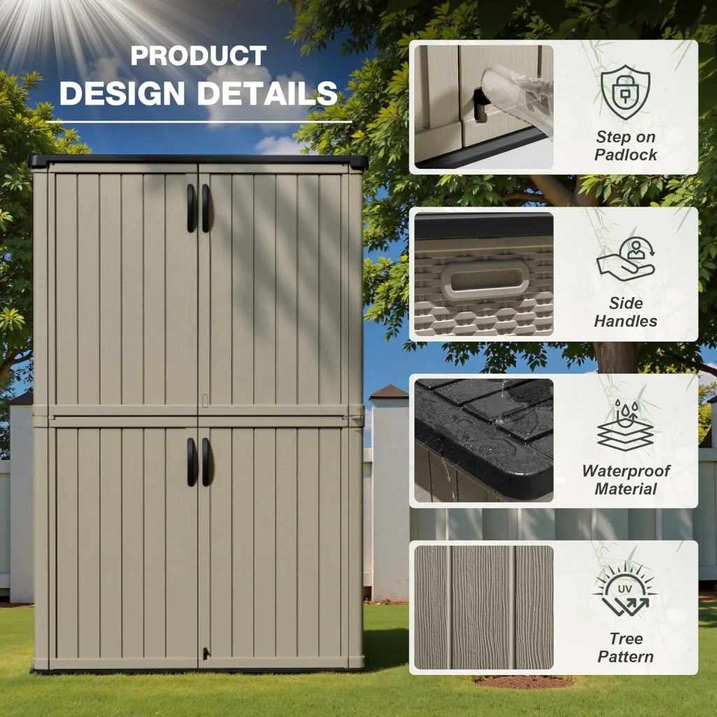 Amopatio 41 Cu Ft Horizontal Outdoor Storage Shed, Resin Trash Can Storage,Resin Shed for Garden Tools, Lawn Mowers, Garbage Cans, Patio Use